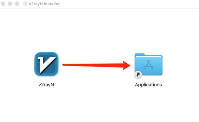 双击打开下载文件后,v2rayN Installer 窗口弹出。将v2rayN图标拖到Applications图标: