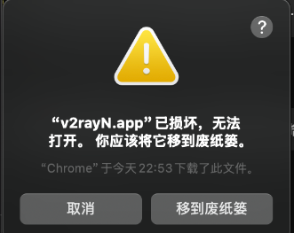 注意:由于安装包没有签名,会提示应用已损坏;安装后需要运行:xattr -cr /Applications/v2rayN.app